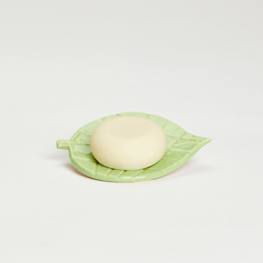 Den handgjorda tvålkoppen i lera är designad i form av ett björklöv. Med en diameter på ca 13 cm och en grön glasyr är det ett dekorativt tillbehör till ditt badrum.