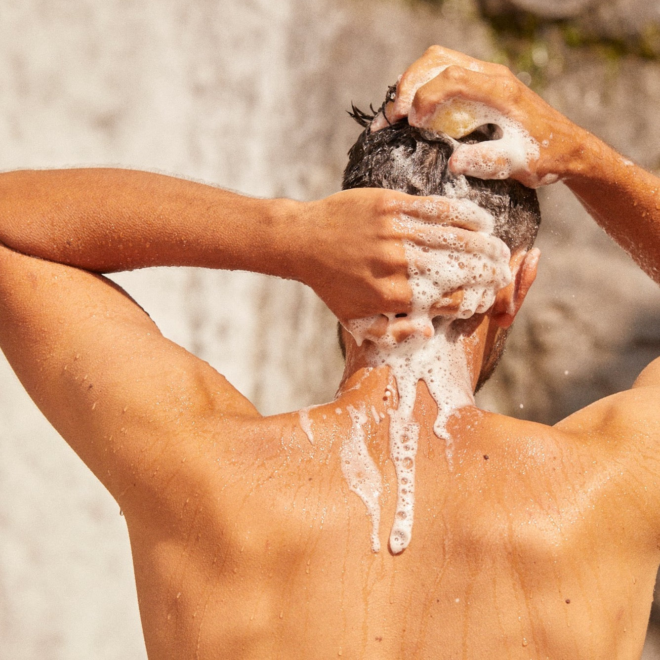 Massera in tvålen intensivt i den genomblöta hårbotten för att jobba upp ett ordentligt lödder. Skölj ur tvålen noggrant och upprepa gärna schamponeringen minst en gång. Som balsam kan man antingen skölja igenom håret med en sursköljning av äppelcidervinäger och kallt vatten (1:10) eller bara skölja håret med kallt vatten för glansigt hår.Efter användning rekommenderas det att placera tvålen på en luffa eller i en tvålfåt för att torka.